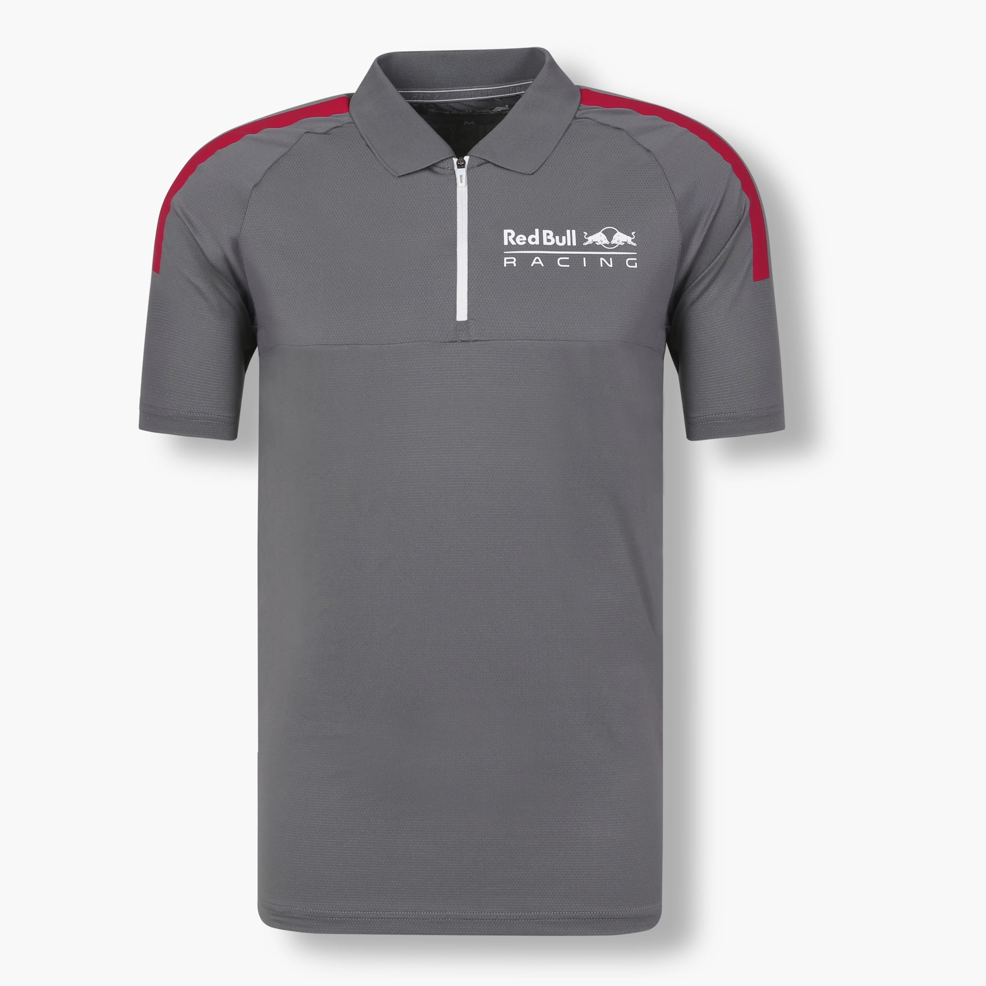 Red Bull Racing Tech Polo mit Team-Logo auf der Vorderseite und „Gives you wings“-Aufdruck auf der Rückseite
