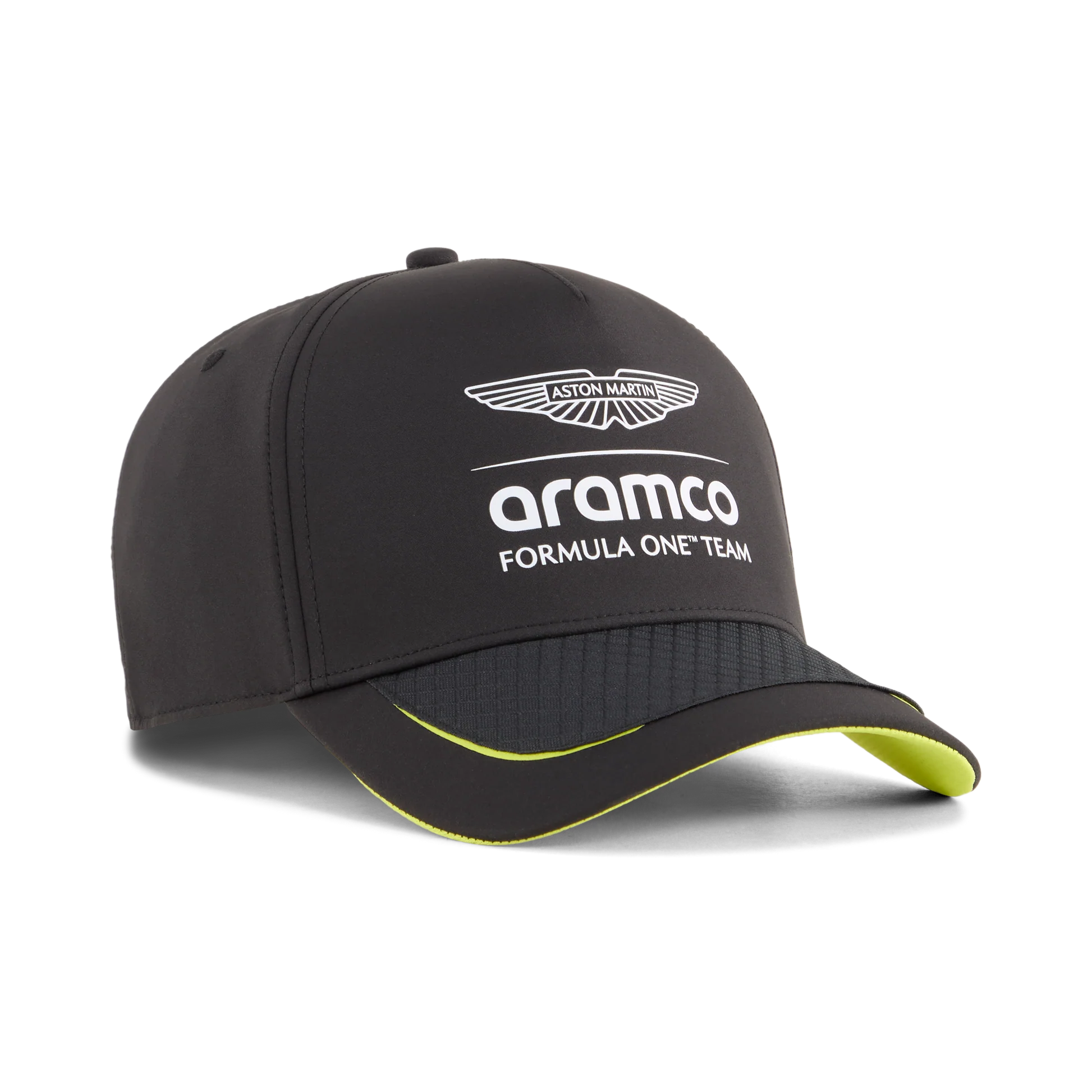 Featuring a stealthy black base with precision neon lime accents, this cap captures the sophisticated racing soul of the Silverstone-based team.