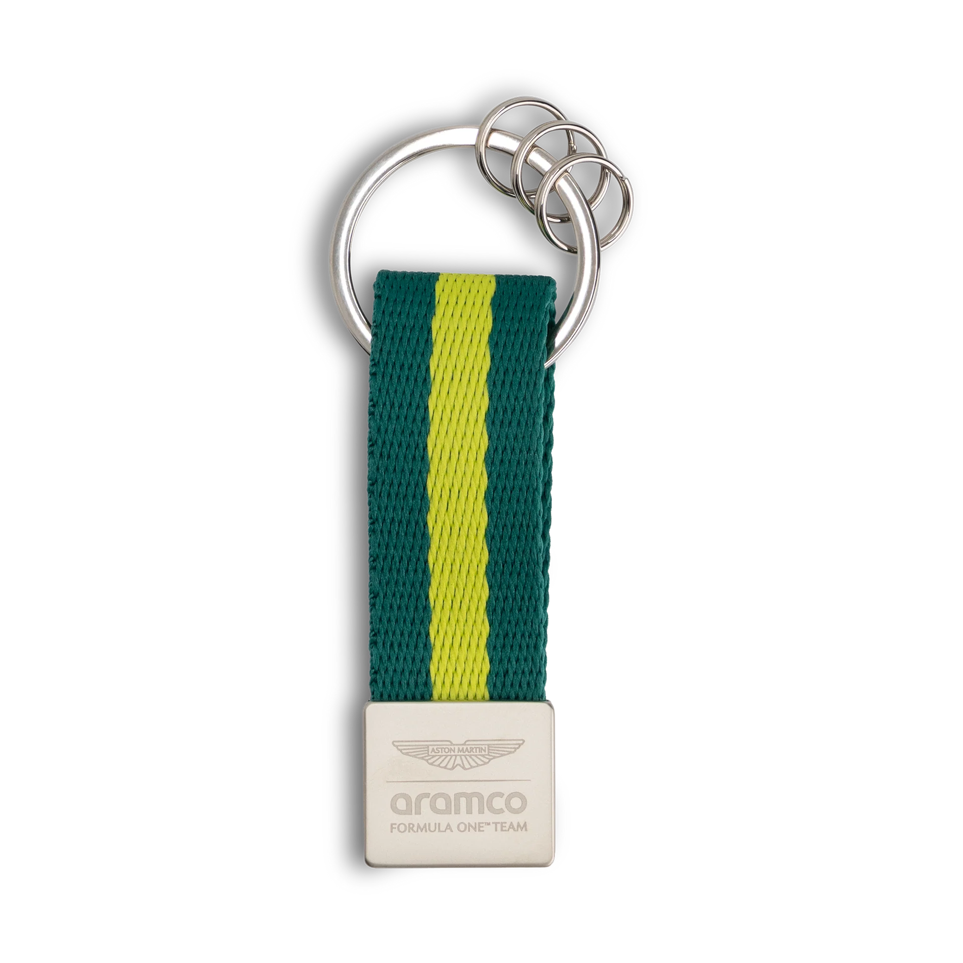 Add a touch of technical flair to your daily carry with the official Aston Martin Aramco F1 Team 2026 Webbing Keyring. This premium accessory captures the team's high-speed identity, utilizing the signature British Racing Green and Neon Lime color palette of the 2026 season. Engineered for durability, it is the perfect lifestyle piece for the fans of the Silverstone-based team.
