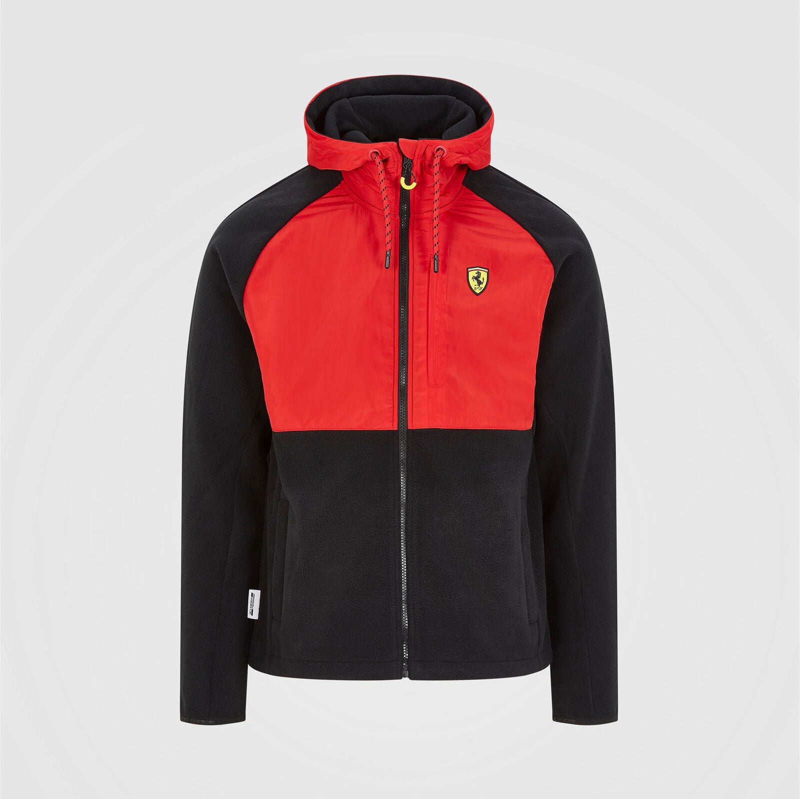 Beat the elements and add the Ferrari Fleece Jacket to your winter collection. Featuring the Italian flag detail on hood and 100% polyester woven overlay on the chest .
