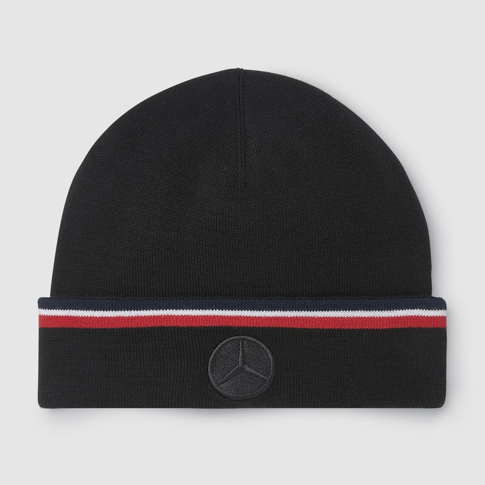 The official 2024 Replica Team Beanie in soft organic cotton, as worn by Lewis and George. Features the Tommy Hilfiger stripe and precision embroidered Mercedes logo.